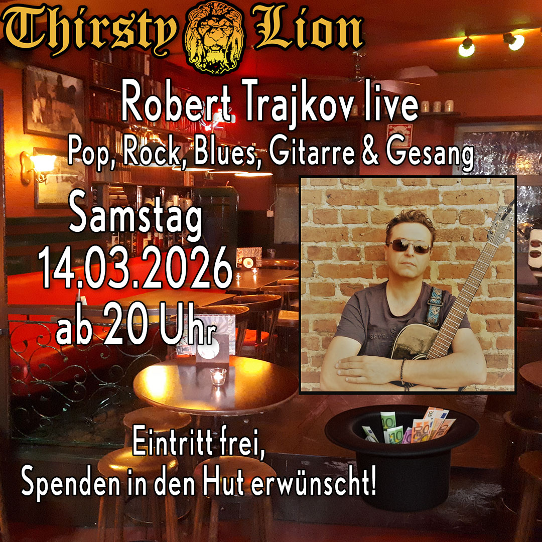 Hutkonzert mit Robert Trajkov Pop, Rock, Gitarre & Gesang Beginn 20 Uhr Eintritt frei, aber Spenden für den Hut sind erwünscht! Mon, 09. Mar 2026 -